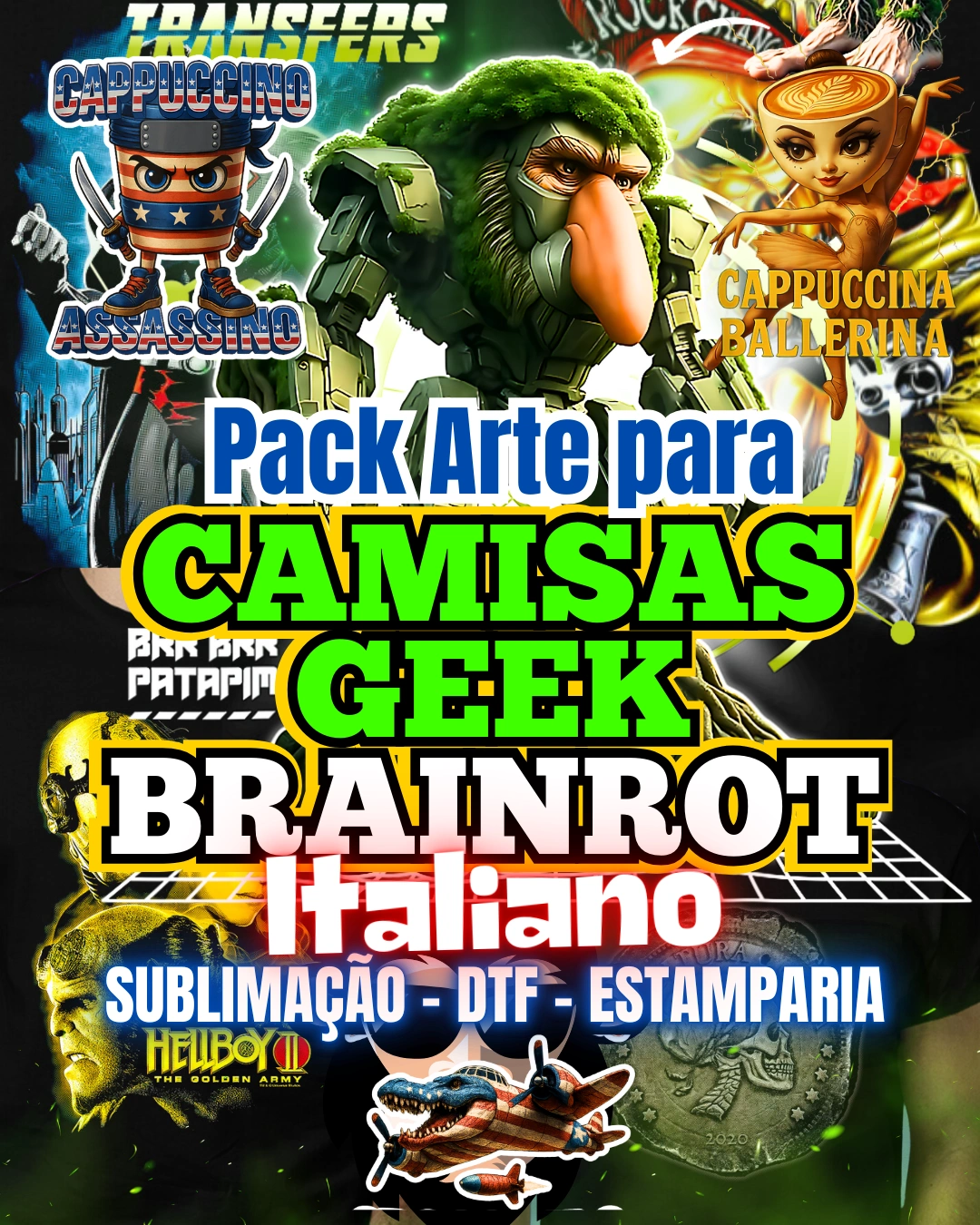PACK ARTES PARA CAMISAS GEEK ANIME BRAINROT 2026 + BÔNUS – DTF – SILK – SUBLIMAÇÃO