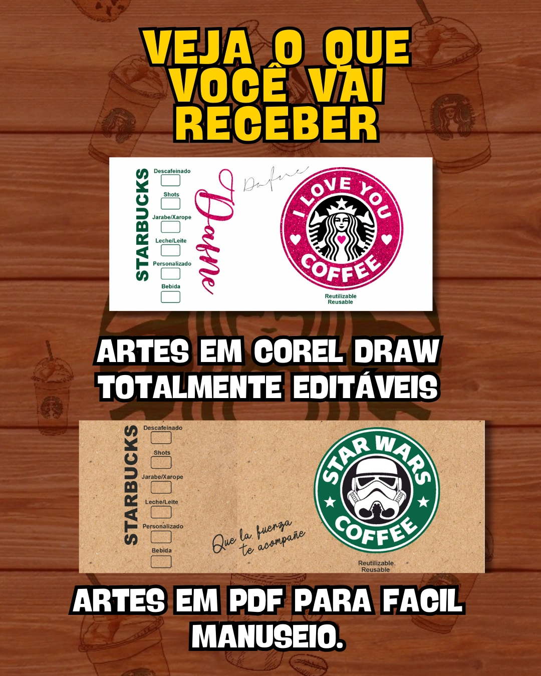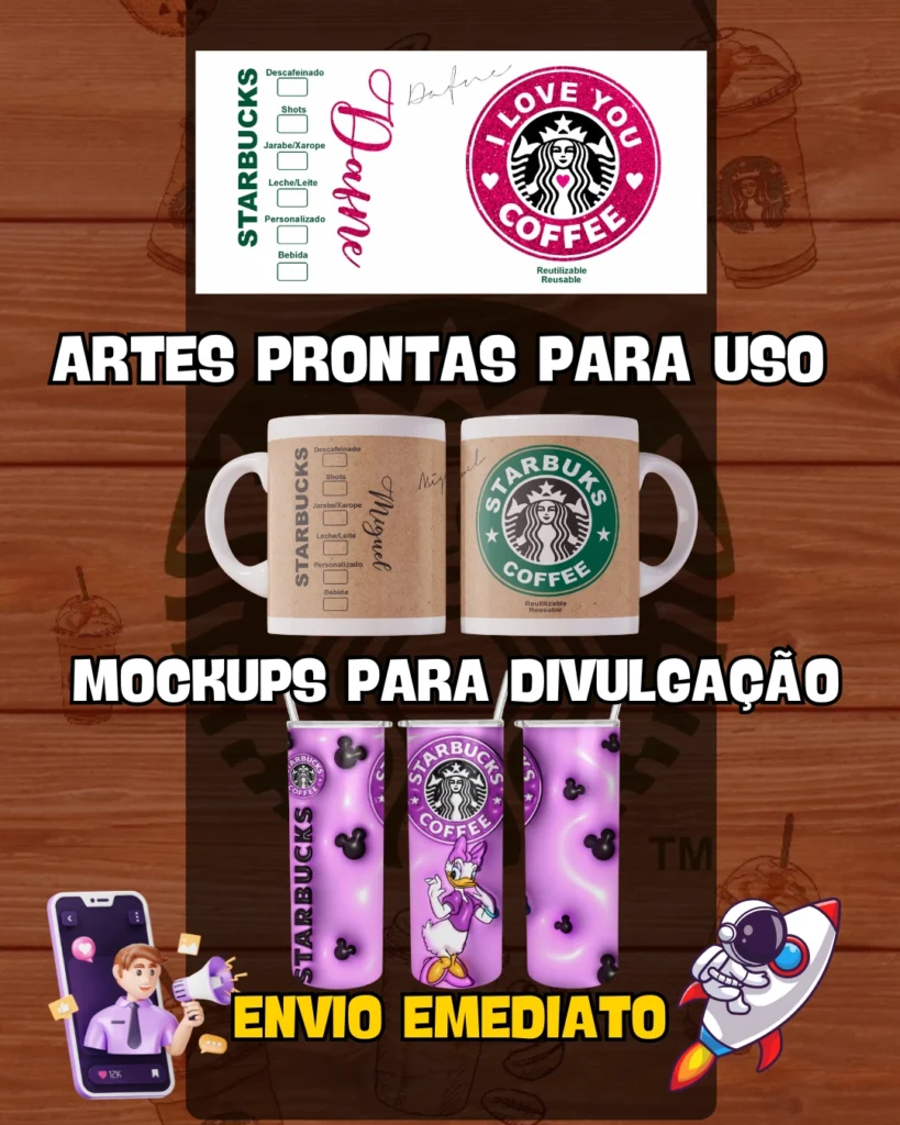PACK ARTES PARA CANECAS STARBUCK COFFER PERSONAGENS + BÔNUS