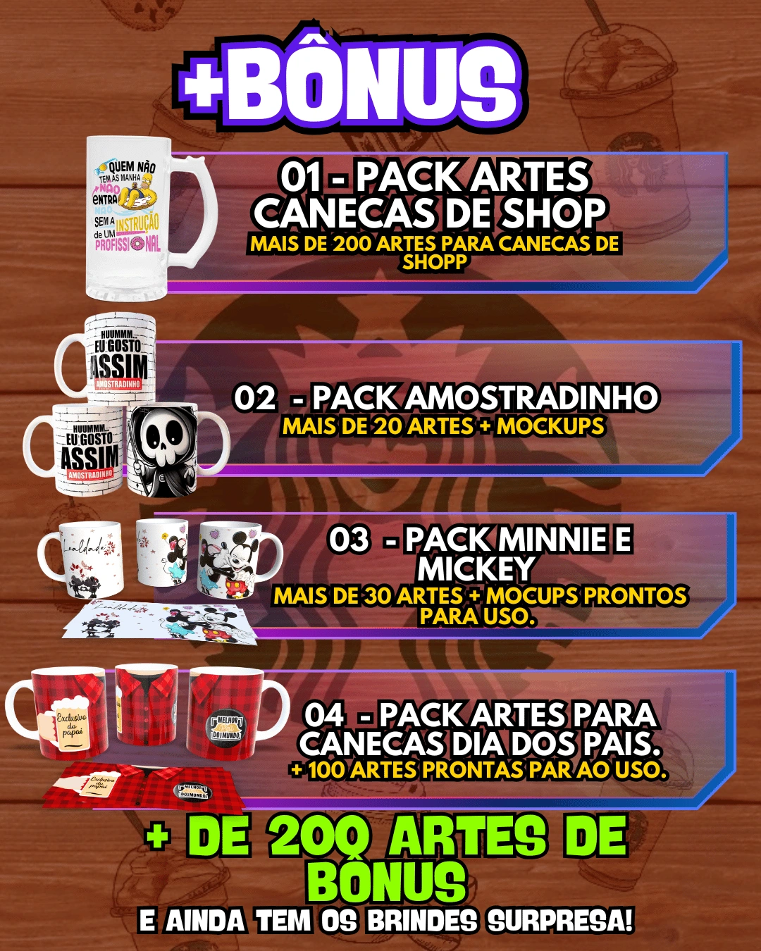 Início / Sublimação / Canecas / PACK ARTES PARA CANECAS STARBUCK COFFER PERSONAGENS + BÔNUS